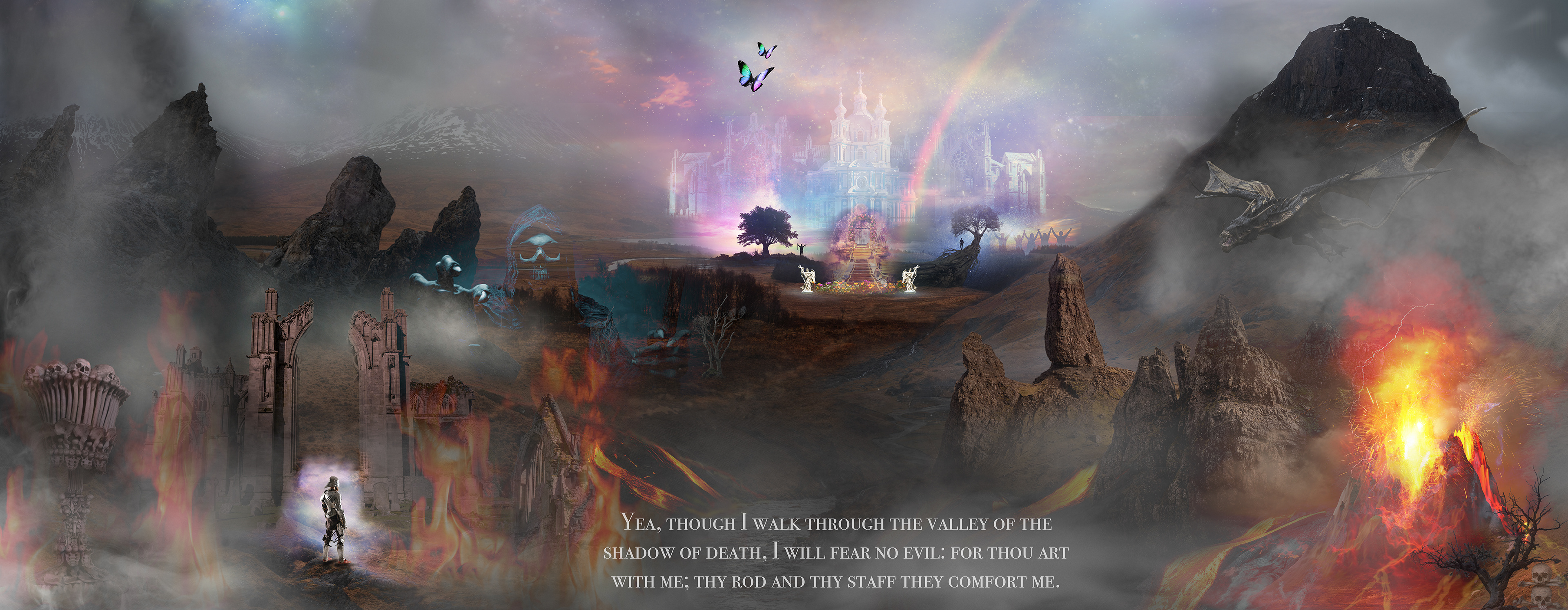 Yea, though I walk through the valley of the shadow of death, I will fear no evil: for thou art with me; thy rod and thy staff they comfort me.